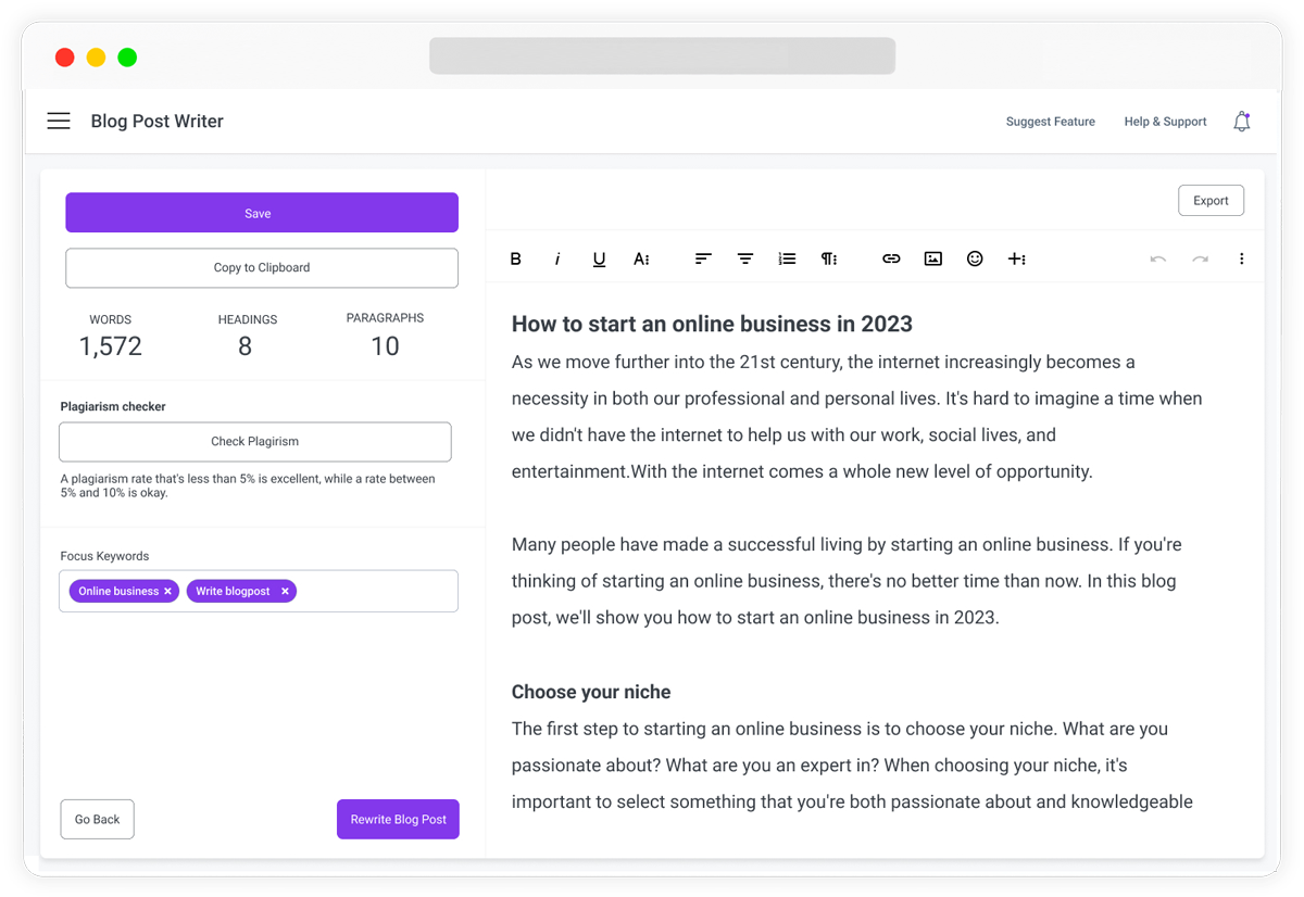 We focused on creating the simplest and most intuitive AI writer that allows you to get your work done without standing in the way.