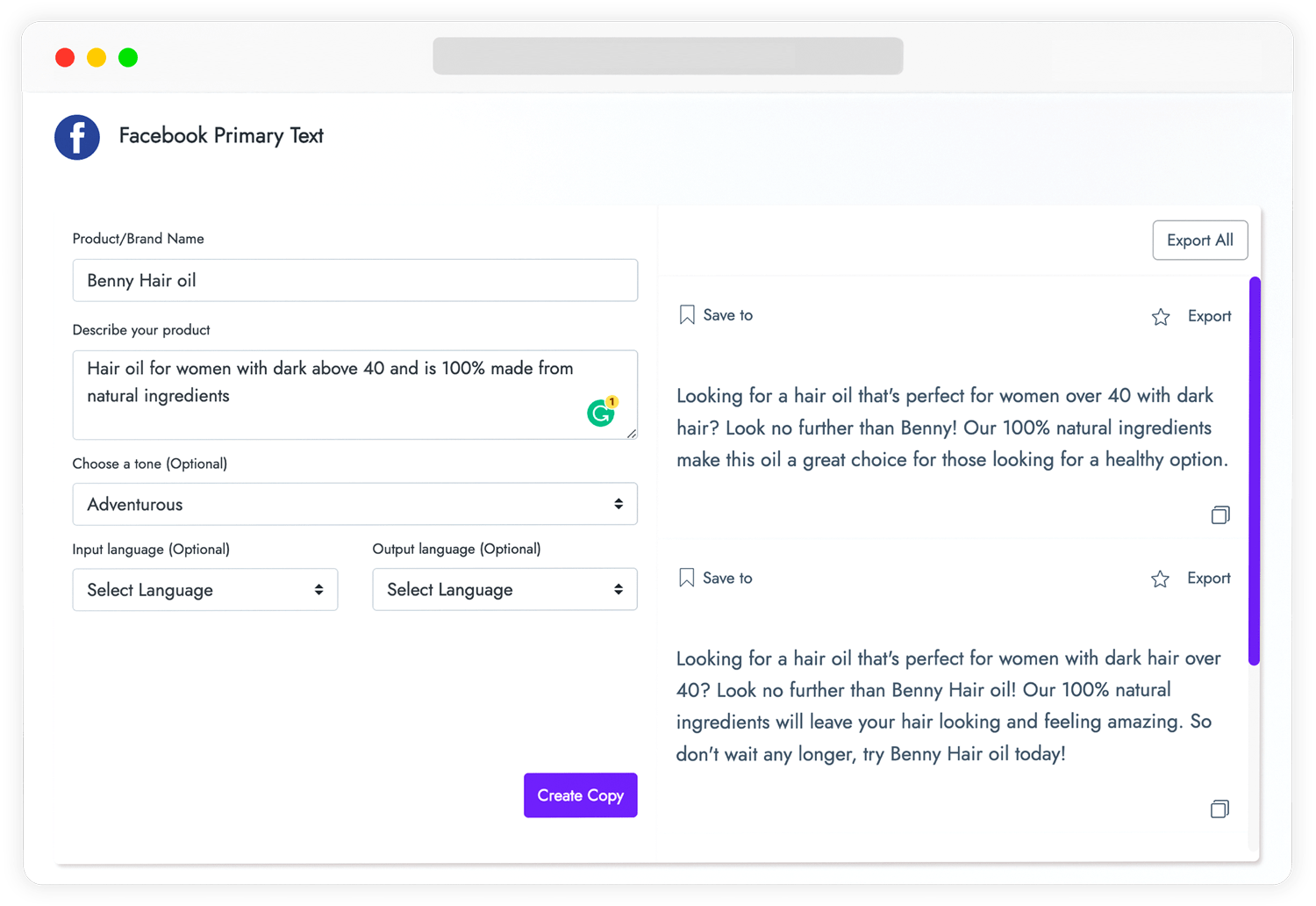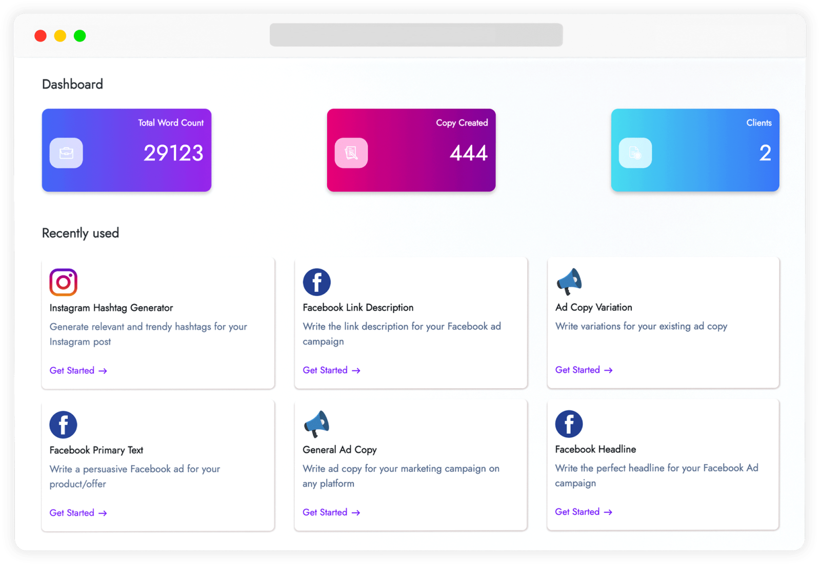Pick from a wide selection of copy templates & tools